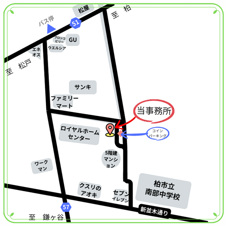 | 所在地 | 〒277-0054 千葉県柏市南増尾7丁目9番5号 南増尾ビル2階 |